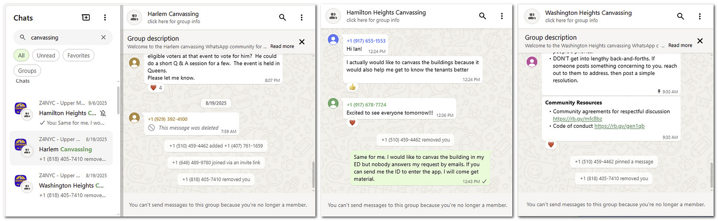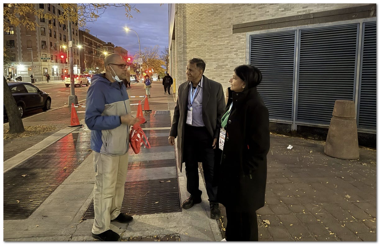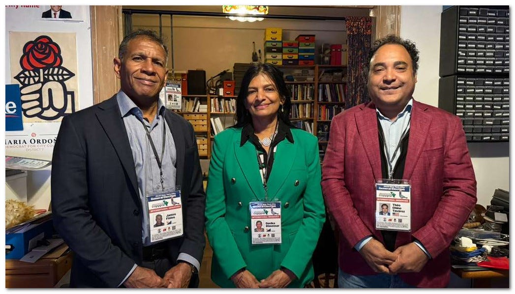 Davika Bissessar and James Finies of the Bonaire Human Right Organization spoke with a canvasser from the NYC Africans for Zohran for Mayor Coalition outside an early voting location.