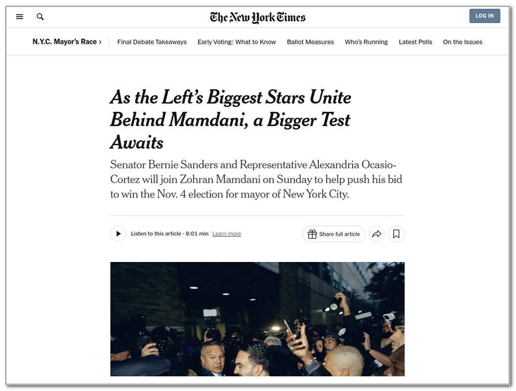 On October 26, 2025, Lisa Lerer wrote an article about Zohran’s upcoming rally with Bernie Sanders and Alexandria Ocasio-Cortez — an article I felt was riddled with errors.